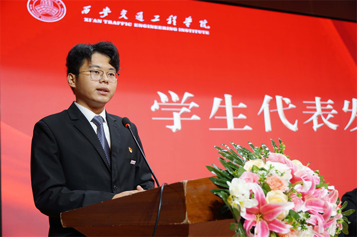 机械与电气工程学院学生李康代表考研同学发言,他作为考研路上的一个追梦人,从起初时的迷茫与徘徊,到渼陂书院的成立,给他树立了考研的坚定信念和坚强决心,同时鼓励大家在渼陂书院的熔炉里要卧薪尝胆、不忘初心,实现自己的梦想。