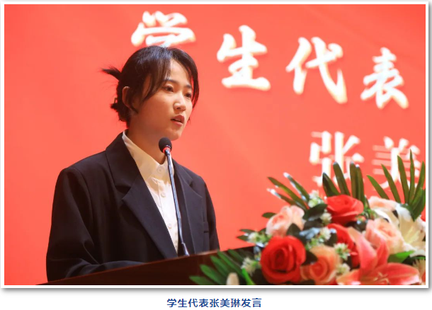 机械与电气工程学院学生张美琳代表考研同学发言,她作为考研路上的一个追梦人,感谢学校为所有考研学子提供渼陂书院这个学习和交流的平台,给大家树立了考研的坚定信念和坚强决心,同时鼓励大家在渼陂书院不忘初心,实现自己的梦想。