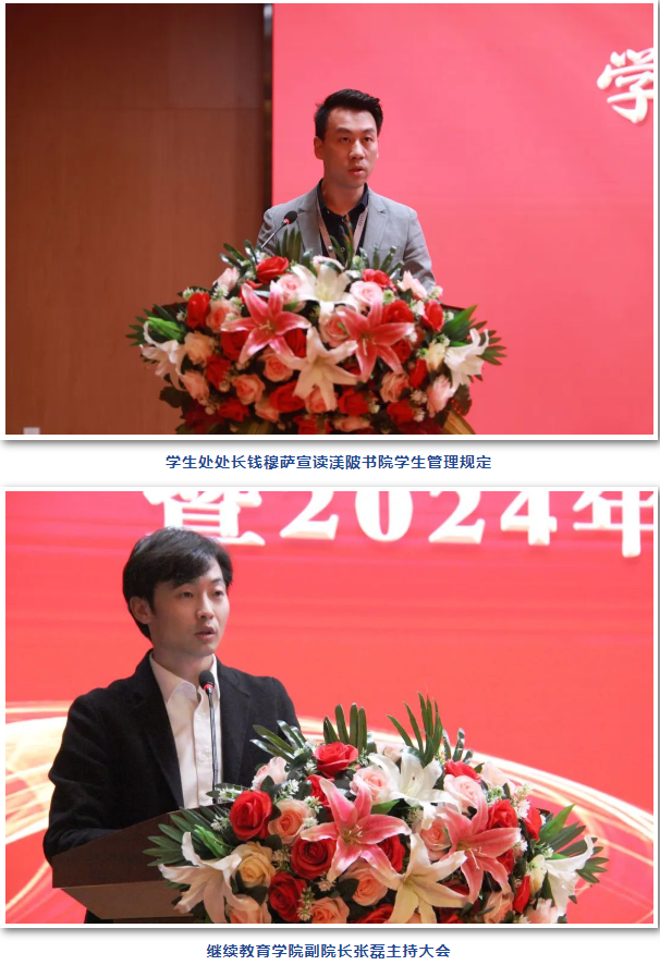 副校长徐炜表示今天的开班仪式是帮助大家了解考研新向标、理清新思路、树立自信心。渼陂书院从去年成立,我校的考研人数离既定目标虽然还有些差距,但已经突破历年最高,相信在大家共同努力下,今年的考研成绩一定会更好!考研是一项艰巨的任务,徐校长希望大家要有足够的毅力和决心,通过考研,同学们可以深化专业知识,提高研究能力,扩大视野,提升综合素质。最后,徐校长讲到考研是人生的一条道路,无论考研的结果如何,都不应该影响对未来的期待和对生活的热爱。希望同学们有信心,有决心,有毅力战胜所有的困难,实现梦想。