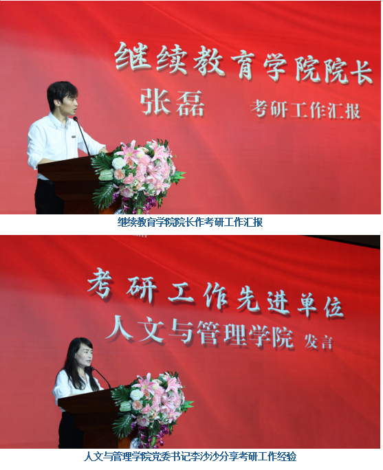 考研工作先进单位人文与管理学院党委书记李沙沙介绍了人文与管理学院的考研情况,她介绍学院构建“三全”考研指引体系,深化教学改革,整合资源,精准服务学生。李沙沙书记希望同学们保持热情,勇攀高峰,新一届学生以榜样为目标,续写辉煌。
