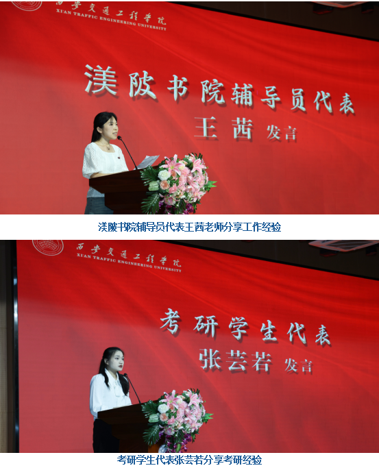 渼陂书院辅导员代表王茜老师从自身在书院的工作出发,分享了考研工作中的经验。希望同学们保持拼搏的精神,不断追求卓越,在新的领域取得更大的成就。