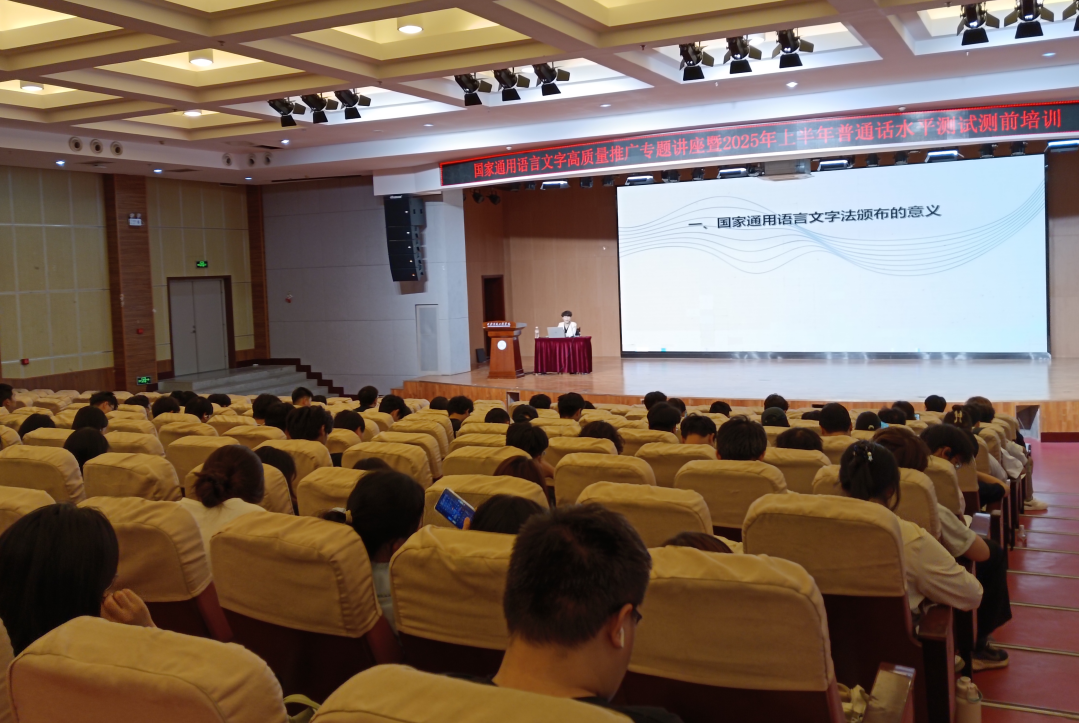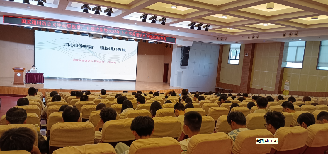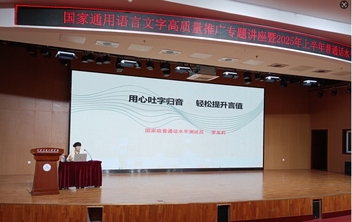 为深入贯彻落实党的二十大关于“加大国家通用语言文字推广力度”的部署要求,进一步提升师生语言文字应用能力,助力2025年上半年普通话水平测试工作,4月29日下午,我校语委办在学术报告厅举办专题讲座。活动特邀国家级普通话水平测试员、陕西省语言文字专家罗吴利主讲,全校师生代表及上半年普通话水平测试人员共400余人参加。