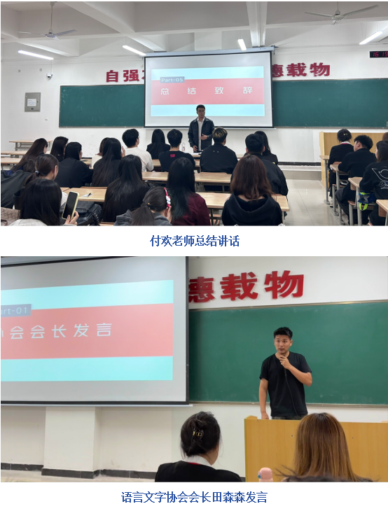 付欢老师强调,社团为大家提供了一个深入学习和探索语言文字魅力的优质平台。借助社团的活动,成员可以提升自己的语言表达能力和文字运用水平。希望大家积极踊跃地参与其中,勇于尝试。多读书以丰富知识储备,多写作以锻炼表达能力,多交流以碰撞思想火花。与伙伴们共同分享学习的心得感悟,相互启发,携手共进。作为指导老师,付老师将为大家提供专业的指导与帮助。期待看到大家在社团中茁壮成长,收获知识与友谊,为弘扬语言文字之美贡献出自己的一份力量。最后,衷心祝愿语言文字社团蓬勃发展,取得丰硕成果!