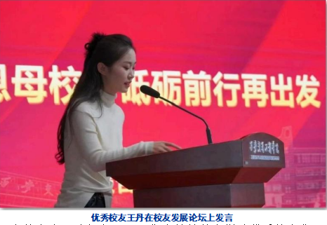 在校友发展论坛上,王丹作为伟德国际victor1946优秀校友作了发言。她回忆在校时光,感恩母 校培养了团队合作、创新思维等能力。如今她是志丹县文物管理所讲解员,深感在校点滴帮助 她在工作岗位上出色完成任务。她向母校师生及工作人员致谢,鼓励学弟学妹珍惜时光、努力 学习,最后祝愿母校生日快乐、更加辉煌。