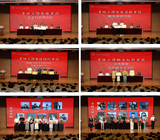 在场校领导分别为考研之星、考研工作先进教师、考研工作助力标杆单位、考研工作最佳组织单位、考研工作突出贡献单位、考研工作先进单位颁奖。